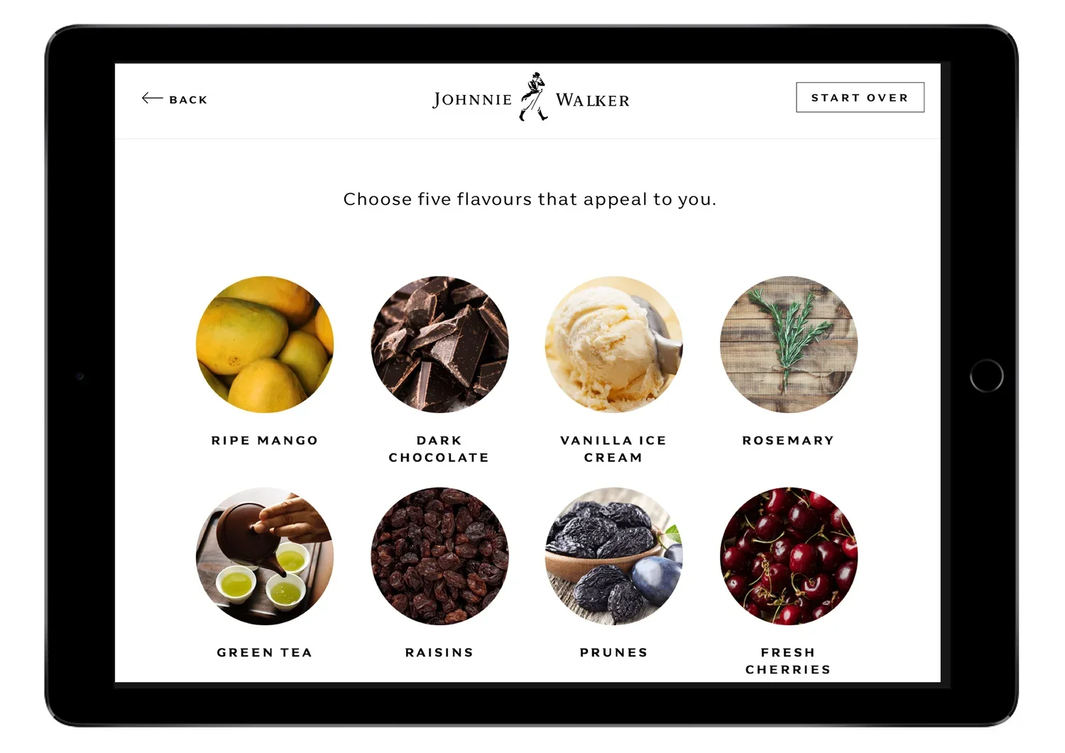 I also designed an app for the Johnnie Walker Madrid store to assist in-store customers with the process.