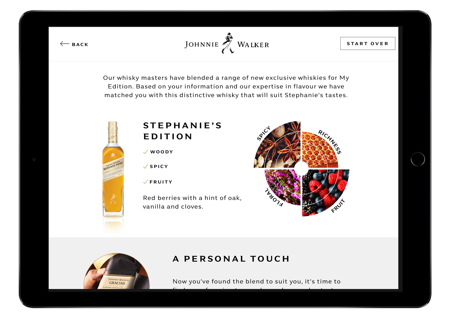 Diageo wanted to give customers a personalised experience, allowing them the opportunity to create their own custom bottle of whisky, choosing flavours, an engraving and a personalised label.